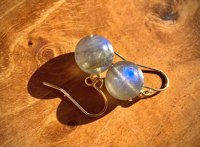 パワーストーンに施術を施してエネルギーを覚醒させております。 パワーストーンはムーンストーンです。その昔、この石は月の輝きが結晶した石だと信じられており、月の魔力の化身として神聖視されていました。古代インドの人々は、ムーンストーンを「聖なる石」として崇め、お守りとして身に着けていたそうです。夜道を照らす月明かりのように、真実を授け、危険から身を守る力を与えてくれると考えられていました。 また、「勘が鋭くなる」「危険を察知する」「進むべき道を示してくれる」といった伝承が多く残っており、予知や透視、占いなどの儀式に用いられてきました。陰陽に照らし合わせるならば、月は陰、つまり影や無意識を表しています。ムーンストーンは持ち主の無意識の部分に働きかけ、潜在能力を引き出し、インスピレーションをもたらしてくれるといわれています。 ムーンストーンは様々な変化に合わせて調子を整え、心を解きほぐして、大らかな気持ちにさせてくれるヒーリングストーンです。一見繊細そうに見える石ですが、実はとても自浄能力が高く、周囲の雑音や悪影響を受けにくいので、どんな状況でも安らぎと癒しの波動を絶やさず、情緒的なバランスを良い状態へと導き、保ってくれるでしょう。また、月は古来より女性性を象徴することから、ムーンストーンは女性特有の不調を和らげてくれると伝えられています。母性を高めて、イライラを鎮めてくれるので、年配の女性や出産を控えた方への贈り物としてもよく用いられています。 金具部分は、アレルギー対策として、ピアスフックパーツ部分は14KGF(14金ゴールドフィルド)を使っています。真鍮に14金の層を高熱と圧力で圧着させたもので14金の層の重量が総重量の1/20以上のものをいいます。金メッキの約100倍の厚さがあるので、剥がれることはほぼなく長く愛用できる素材です。また、比較的金属アレルギー反応も起きにくいといわれています。
