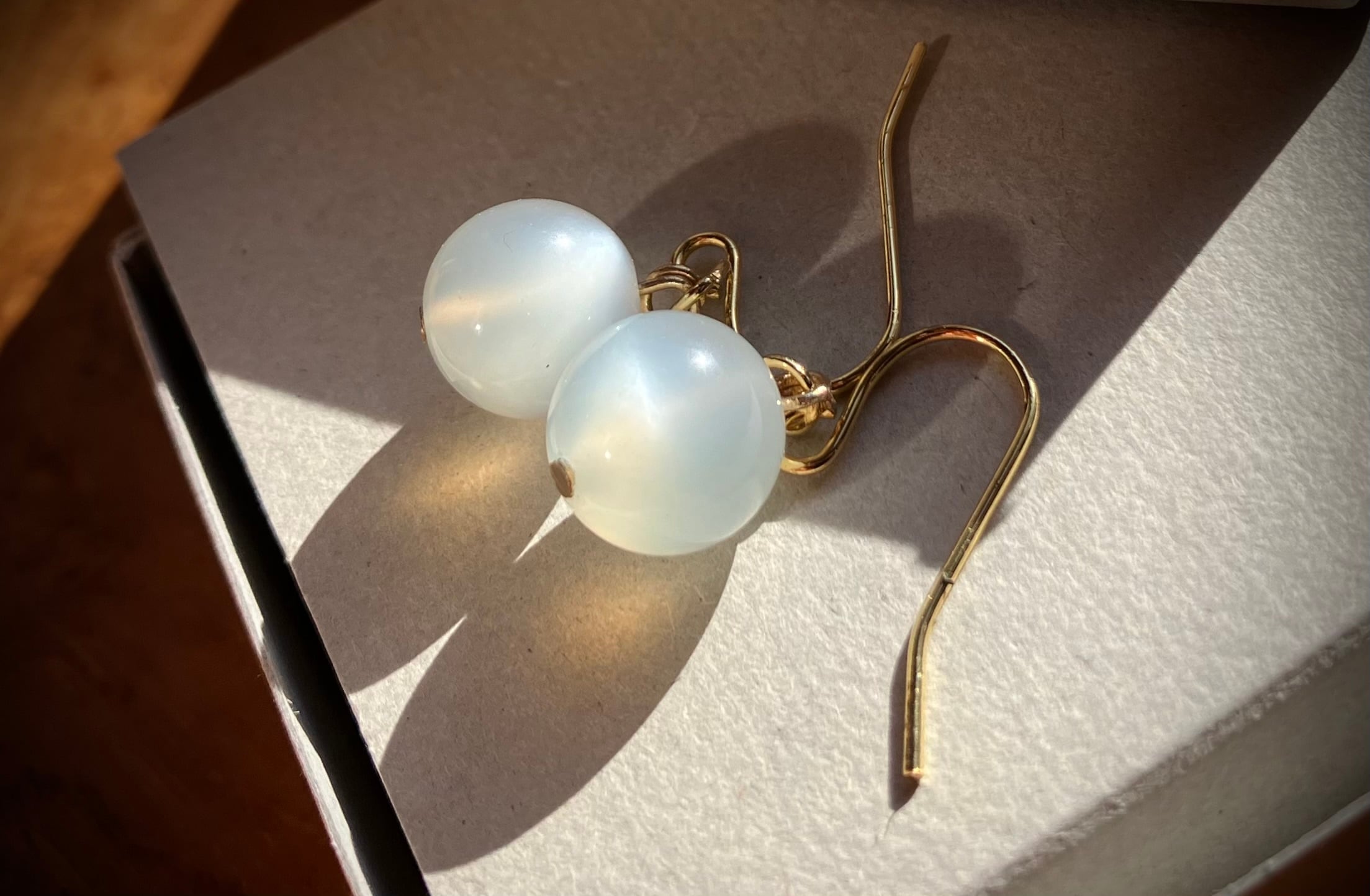 パワーストーンはムーンストーンです。その昔、この石は月の輝きが結晶した石だと信じられており、月の魔力の化身として神聖視されていました。古代インドの人々は、ムーンストーンを「聖なる石」として崇め、お守りとして身に着けていたそうです。夜道を照らす月明かりのように、真実を授け、危険から身を守る力を与えてくれると考えられていました。