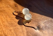 金具部分は、アレルギー対策として、ピアスフックパーツ部分は14KGF(14金ゴールドフィルド)を使っています。真鍮に14金の層を高熱と圧力で圧着させたもので14金の層の重量が総重量の1/20以上のものをいいます。金メッキの約100倍の厚さがあるので、剥がれることはほぼなく長く愛用できる素材です。また、比較的金属アレルギー反応も起きにくいといわれています。