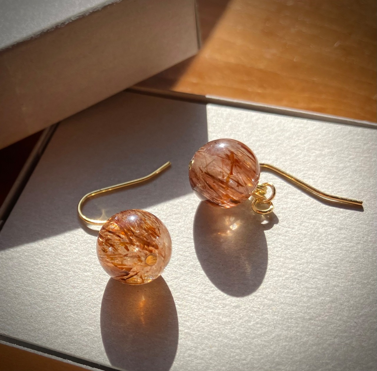 癒しのピアス フォリエーテットマイカinクォーツ 14kgf