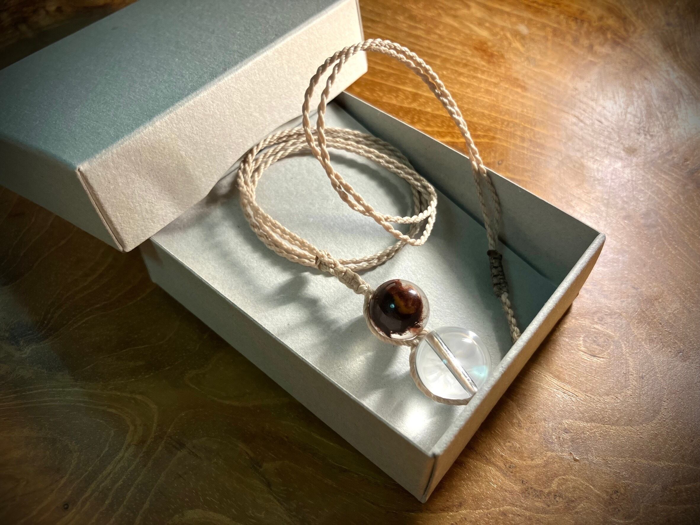 このネックレスは、着けることで自己の高次の意識と繋がるよう、施術を施しております。着けた瞬間から情報身体(霊体)が変化します。ネックレスのトップの石を握ることで更に強くなります。