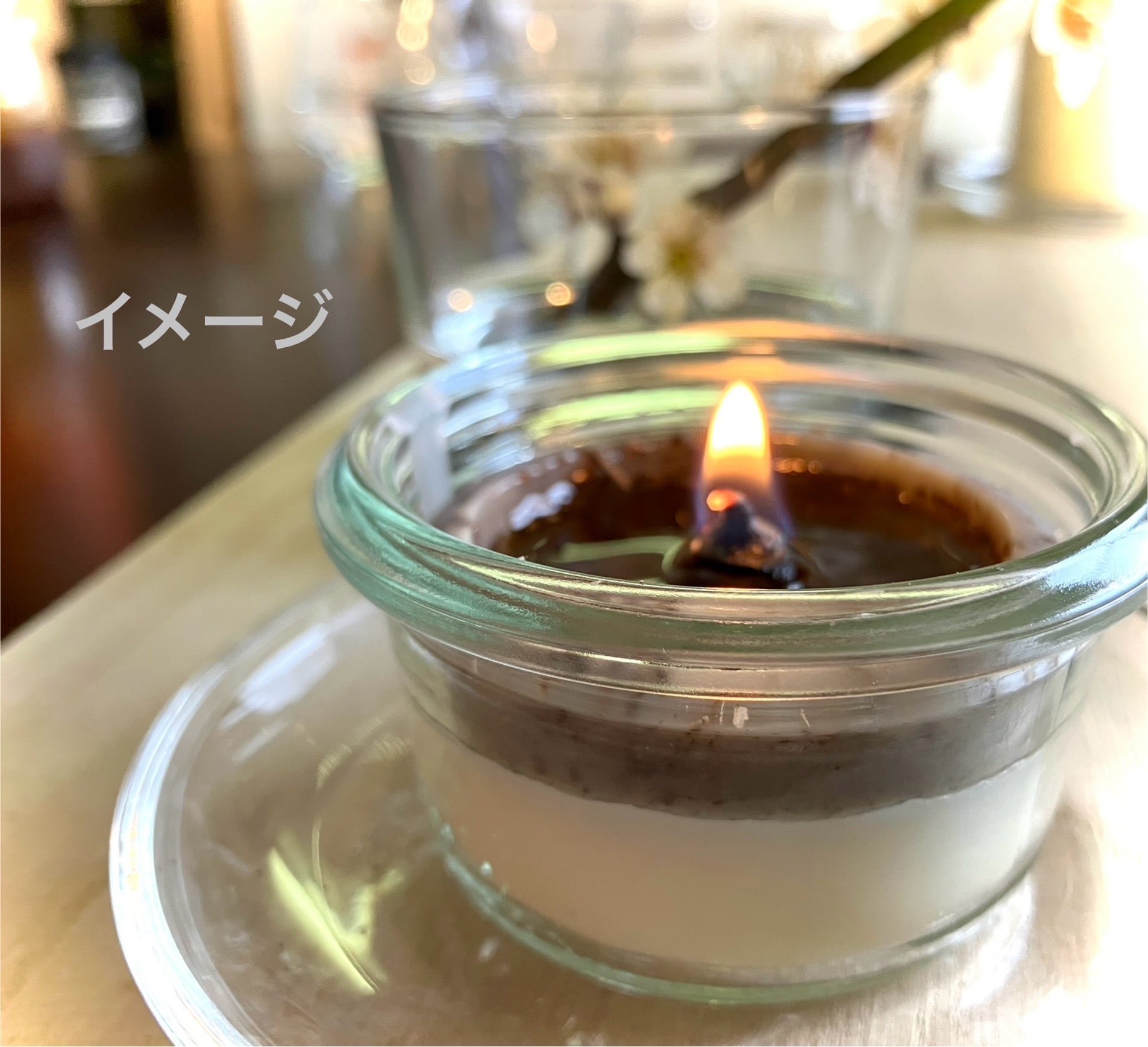 ※ 3、4枚目の写真は商品とはガラスの器が異なっております。キャンドルの溶け方を参照ください。
