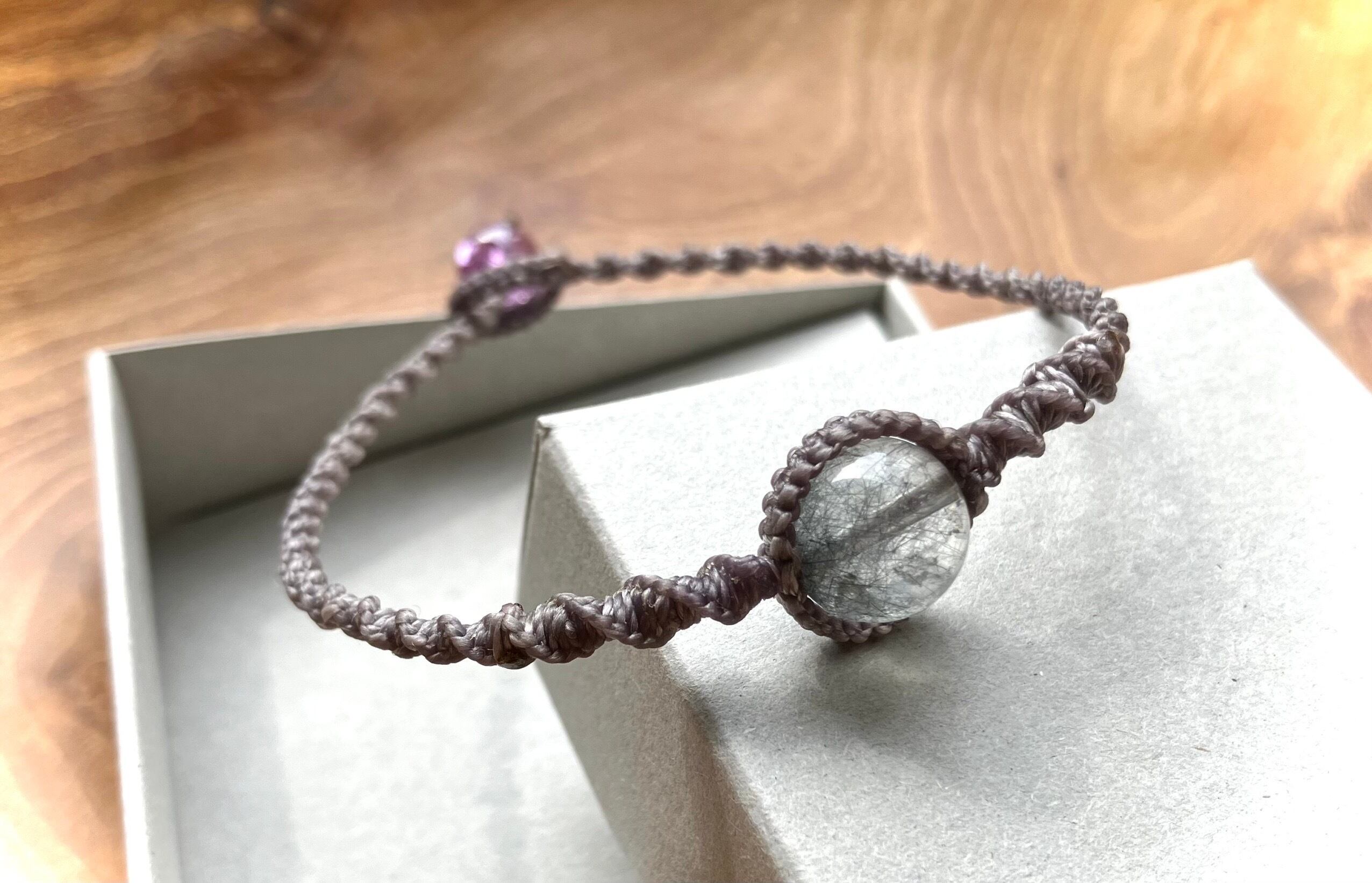 宇宙に繋がるブレスレット ブルーターラクォーツ&スーパーセブン グレー