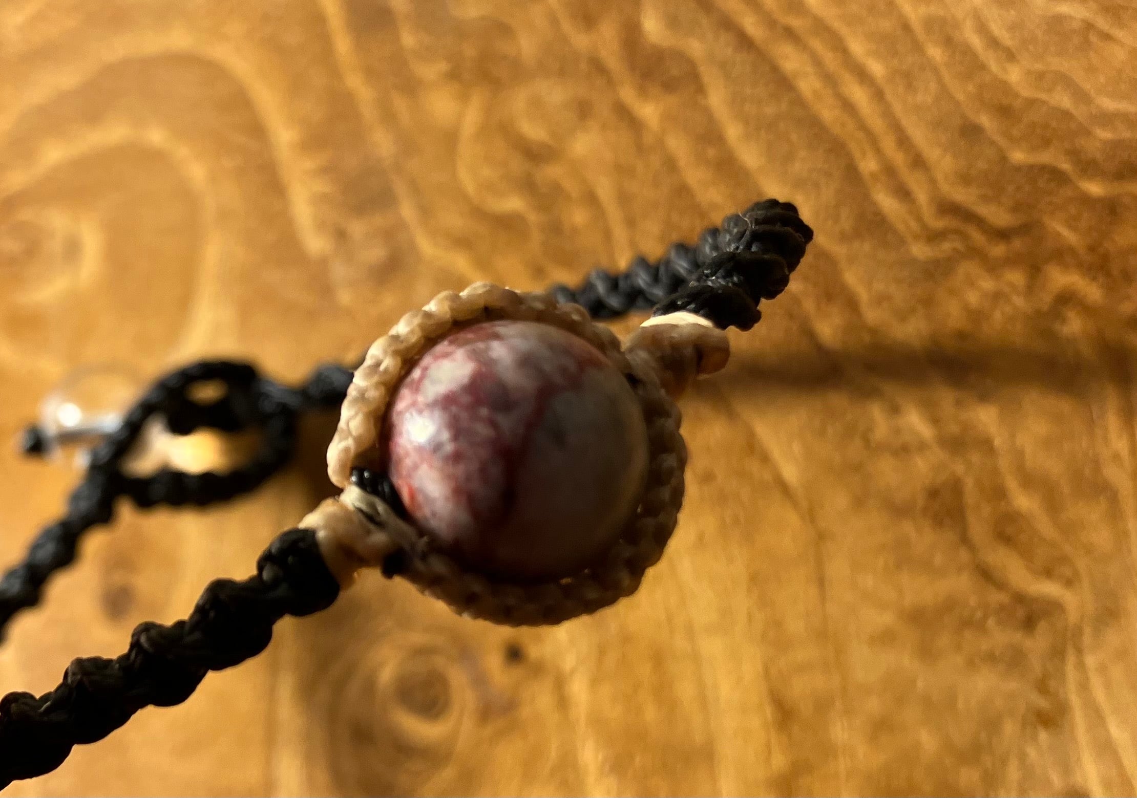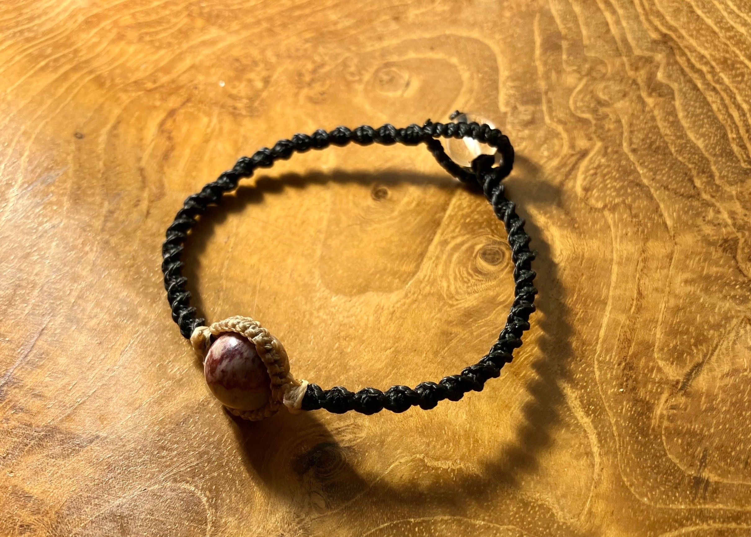 このブレスレットのポイントのパワーストーンはシナバーです。シナバーは辰砂と言われる石です。辰砂(シナバー)は、不老不死の石と呼ばれています。生命力・生殖力を高め、眠っているの力を引き出すのだとか。財運や勝負運などにも強いと言われています。他にも「賢者の石」という異名を持っており、錬金術と深い関わりのある鉱物であったとされています。