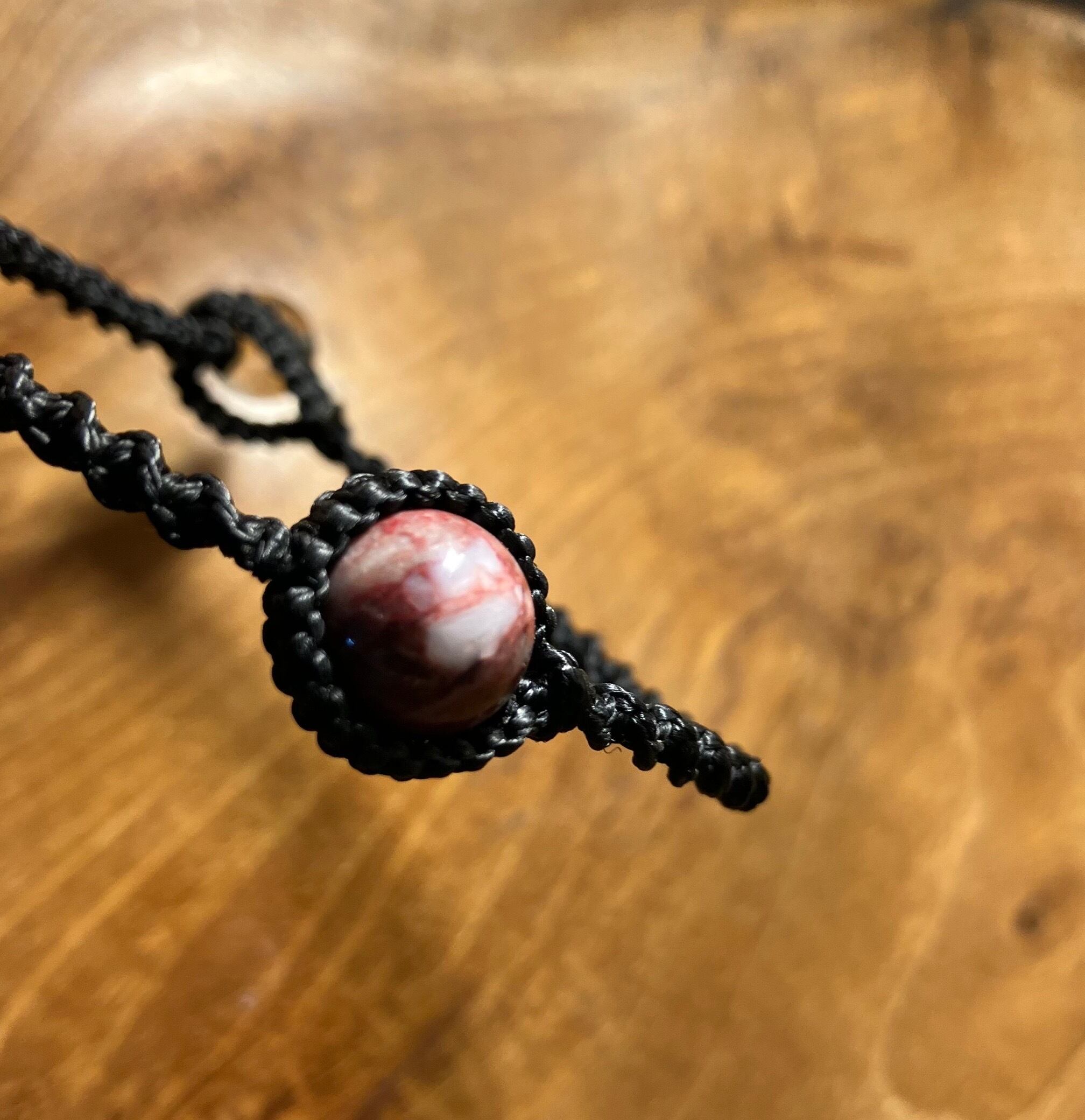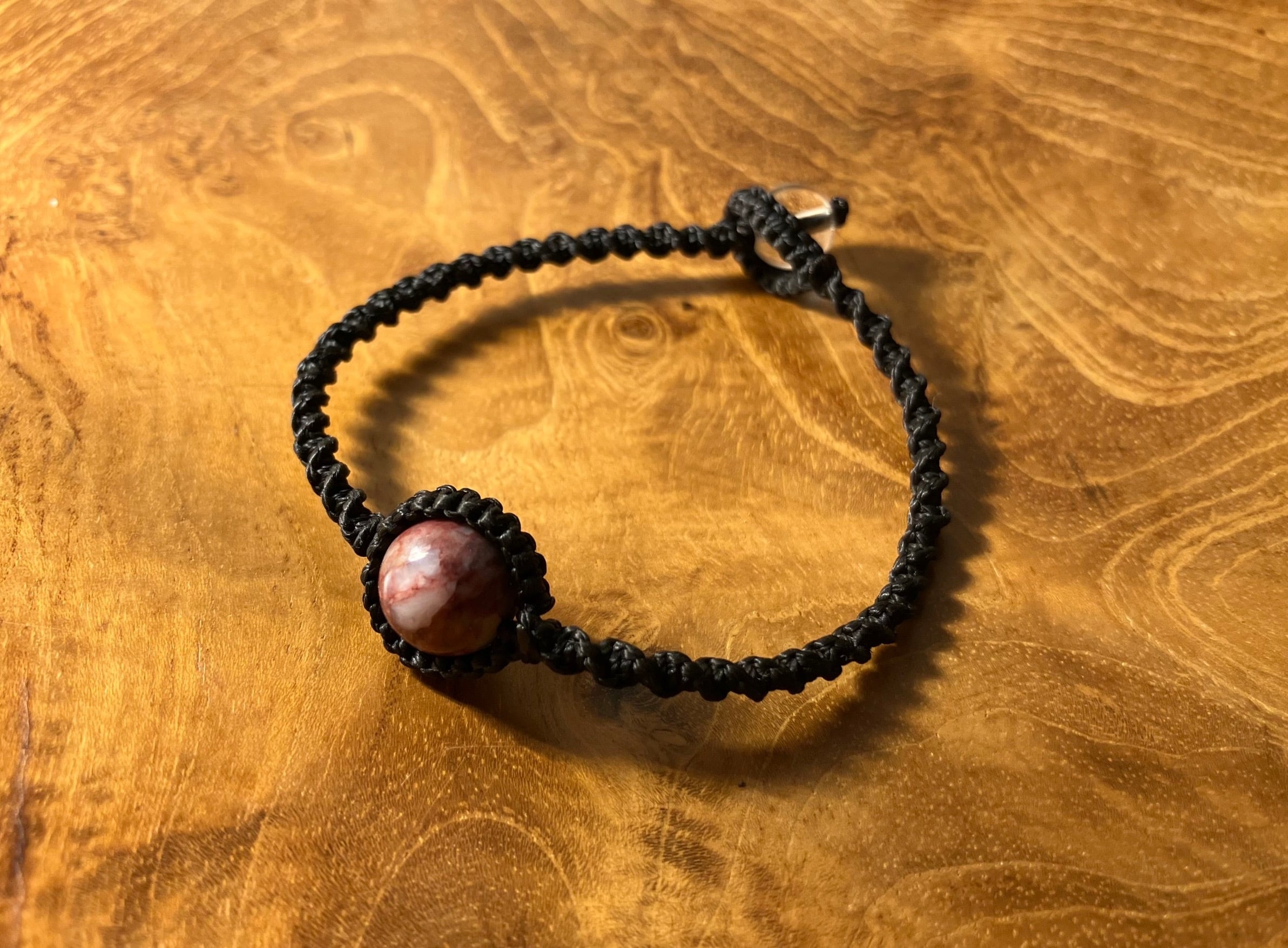 このブレスレットのポイントのパワーストーンはシナバーです。シナバーは辰砂と言われる石です。辰砂(シナバー)は、不老不死の石と呼ばれています。生命力・生殖力を高め、眠っているの力を引き出すのだとか。財運や勝負運などにも強いと言われています。他にも「賢者の石」という異名を持っており、錬金術と深い関わりのある鉱物であったとされています。